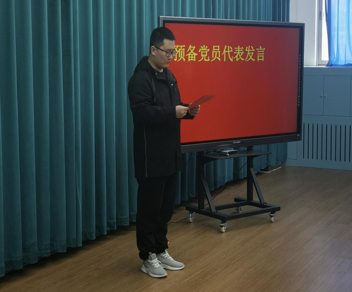 随后,预备党员代表李雪峰、孟纪儒发言,代表全体预备党员表示会在今后的工作、学习、生活中,多做有意义的事,做一个有用的人,时刻以合格共产党员的标准严格要求自己。