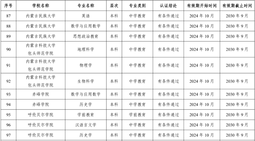 2024年通过普通高等学校师范类专业认证的专业名单