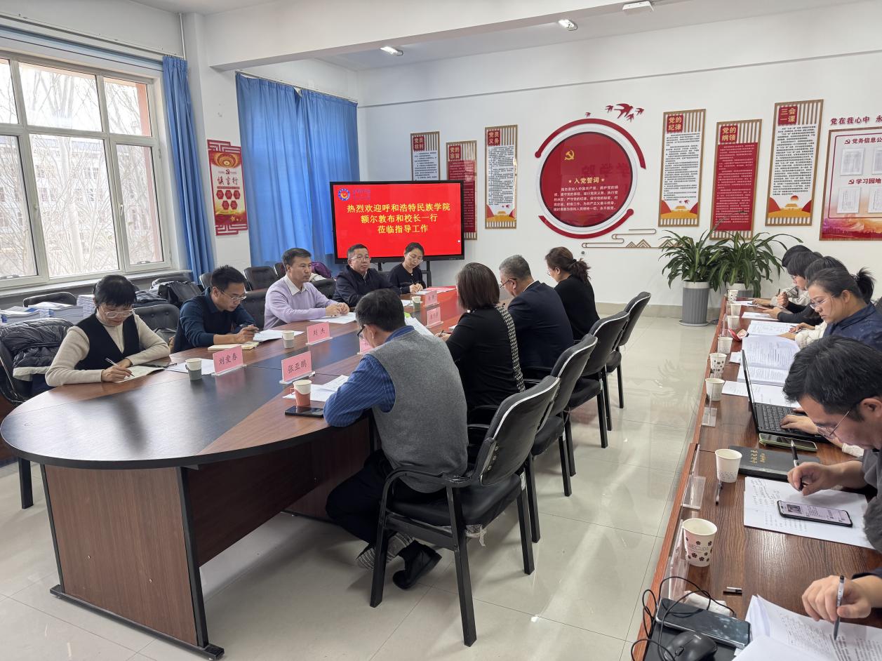 2024年12月6日,呼和浩特民族学院一行5人莅临我院展开交流访问,旨在加强校际合作,实现资源共享、经验互鉴。此次来访团队由呼和浩特民族学院副院长额尔敦布和教授带队,成员包括呼和浩特民族学院数学与大数据学院书记白秀、分析教研室主任吴晓红、学生工作办主任刘秀春以及骨干教师刘杰。我院书记刘伟学、副书记杨琦、副院长张亚鹏、副院长王晓英、教务办主任王日栋、团学办主任何涛等人热情接待了呼和浩特民族学院团队领导和老师。