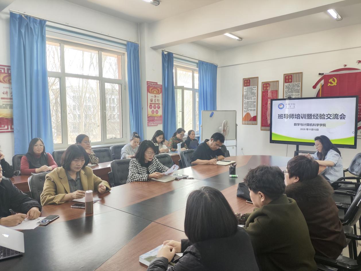 为进一步规范班导师工作流程,明确岗位职责,提升育人实效,11月12日下午,数学与计算机科学学院召开班导师培训暨工作经验交流座谈会。副院长王晓英、教务办主任王日栋、团总支副书记杨爽及全体班导师参加会议。