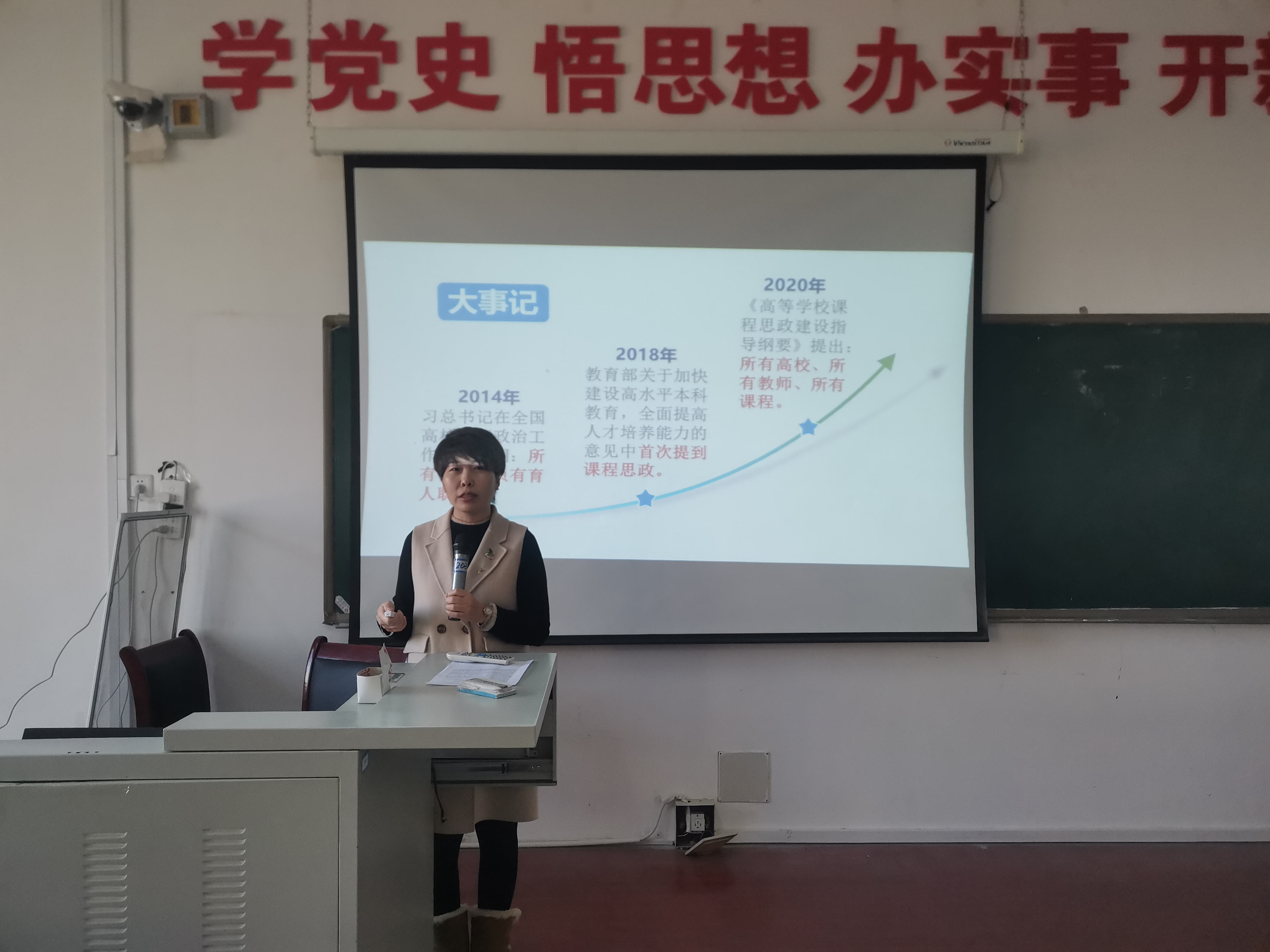 为提高我院教师课程思政教学水平提高人才培养质量,1222日下午,我理工楼325会议室举办课程思政教学专题报告会。此次报告会邀请了我院在自治区首届普通本科高校课程思政教学大赛中获得一等奖的白彦辉老师进行专题讲解学院副院长张亚鹏同志主持会议,全体教职工加了报告会