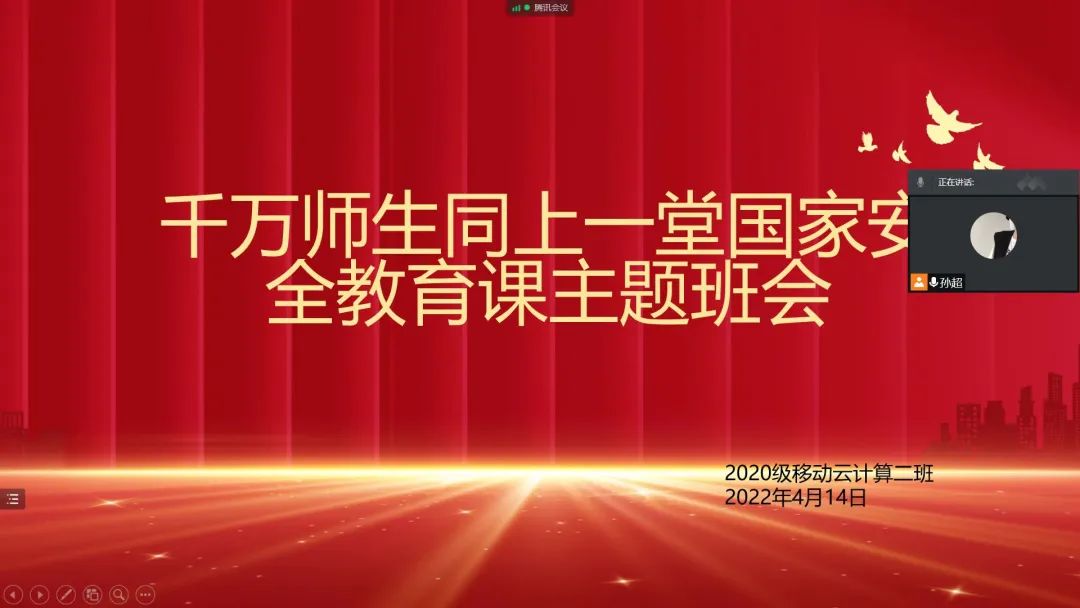 为深入贯彻落实党的号召,推动国家安全法治教育,树牢国家总体安全观,同时提高师生的安全意识,营造“国家安全,有你有我”的社会氛围,数学与计算机科学学院组织我院39个团支部收看了国家安全教育课直播并开展了以“树牢总体国家安全观,感悟新时代国家安全成就,为迎接党的二十大胜利召开营造良好氛围”主题的安全教育班会。进一步强化了学校各项安全工作。