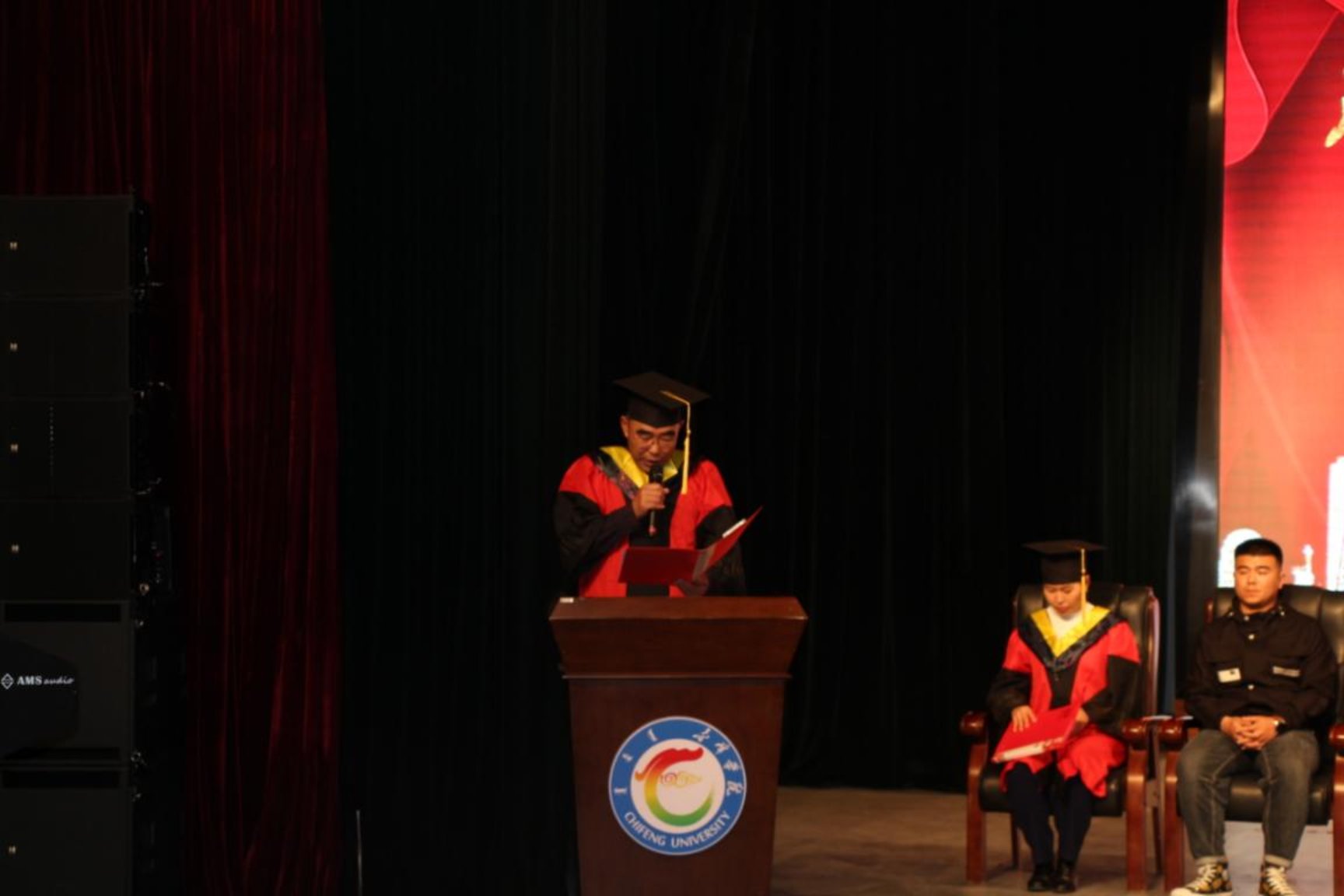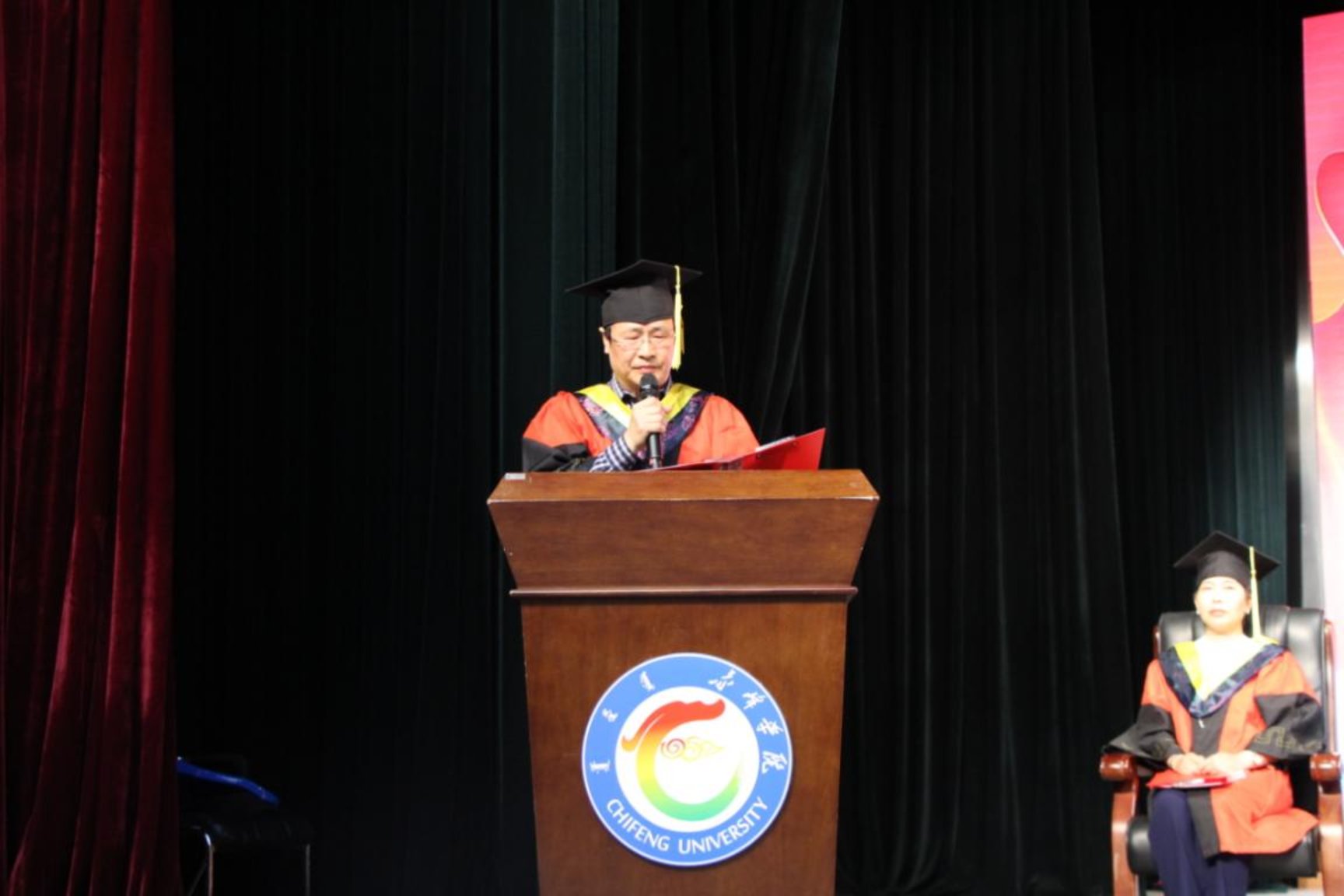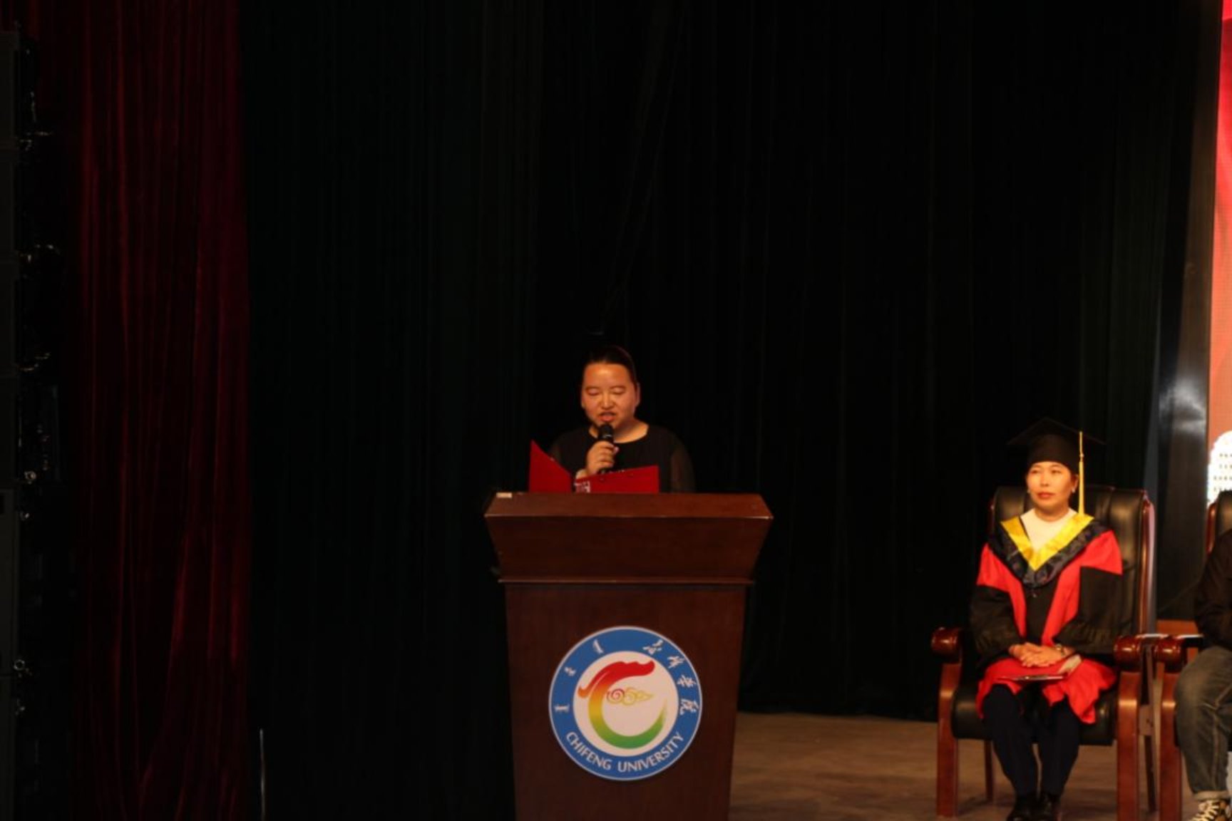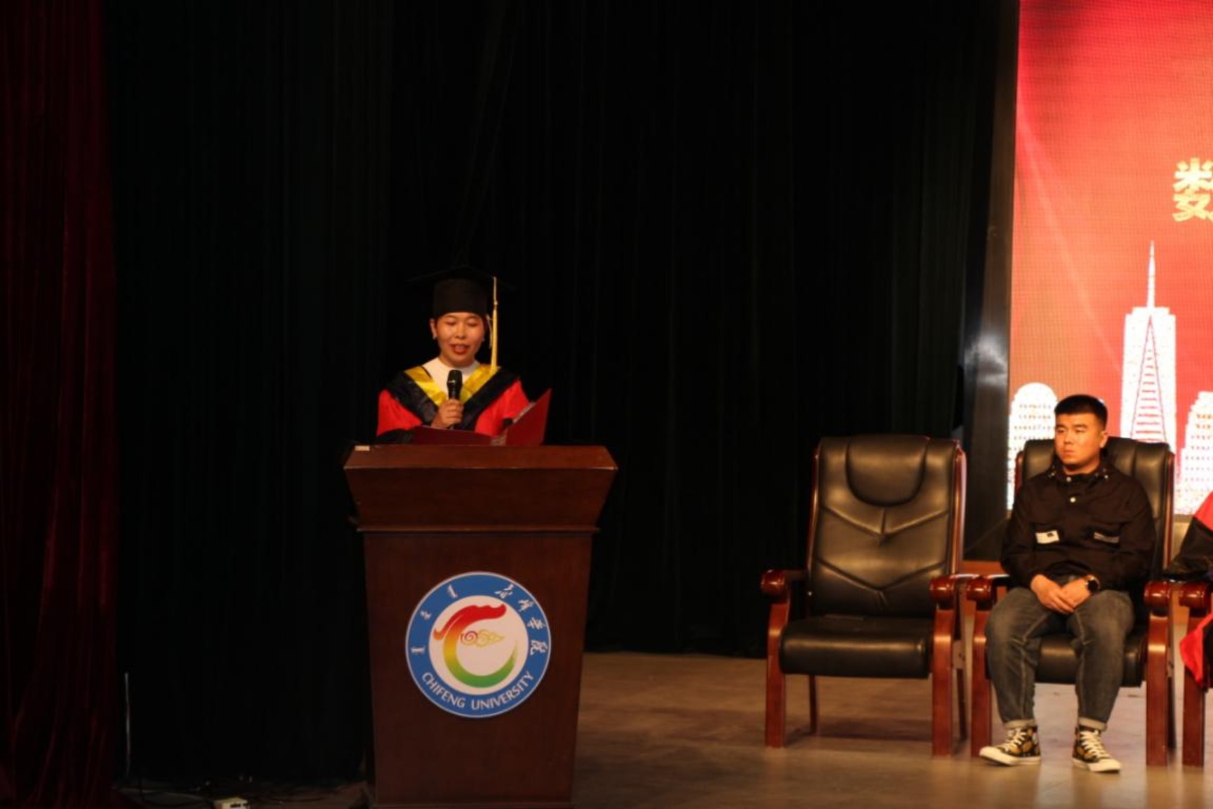 毕业生代表17级大数据二班尹辉同学向母校和全体老师的悉心培育致以崇高的敬意,在即将与母校话别的时刻,他深情回顾了美好大学时光中的收获与成长,并表示作为赤院青年,要努力书写无愧于母校的青春华章。