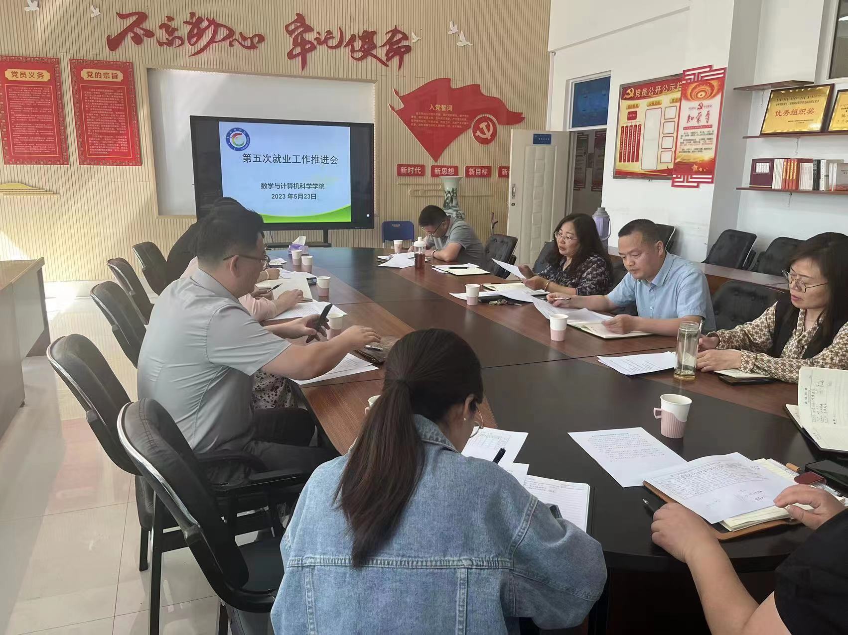 5月23日上午,数学与计算机科学学院在逸夫理工楼313室召开第五次就业工作推进会,领导班子成员、团学办工作人员、毕业班部分辅导员以及四个校企合作企业代表和驻校教师参加了会议。