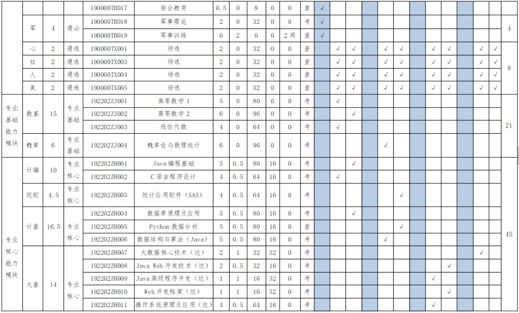 培养面向北京、上海、广州、深圳等经济较发达城市大数据公司的数据分析师、数据算法工程师、数据架构师及数据挖掘工程师。