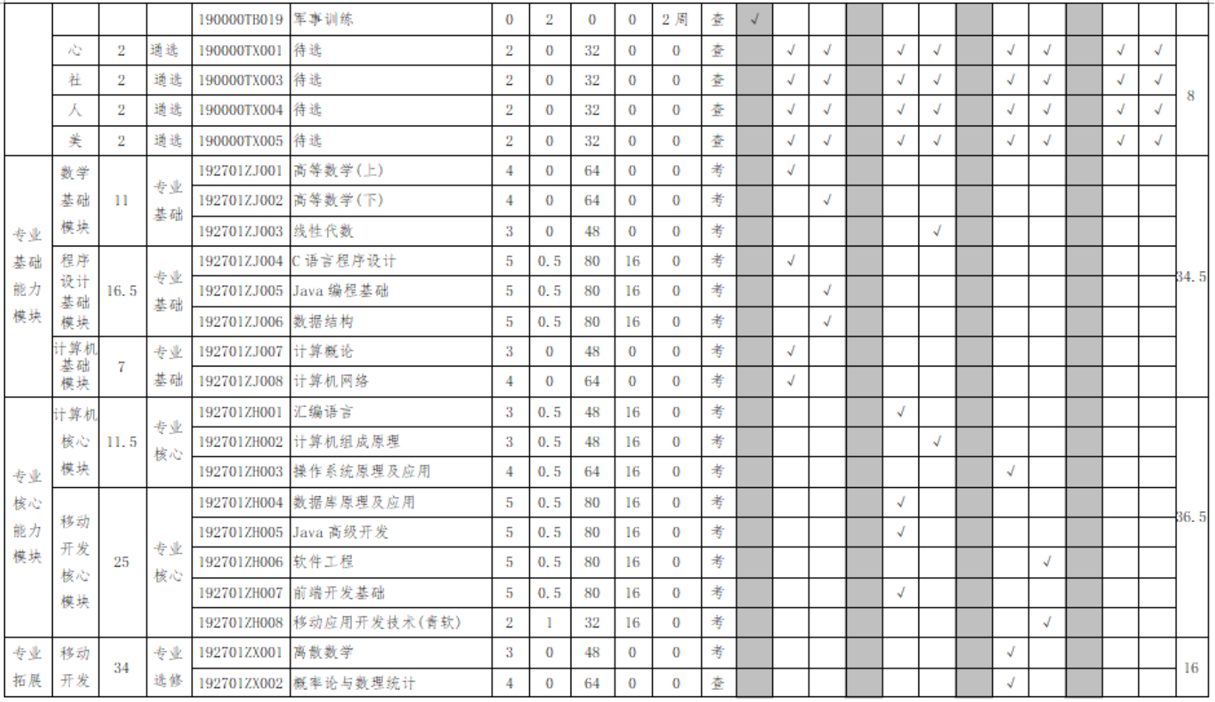 信息与计算科学(智能移动方向)培养方案