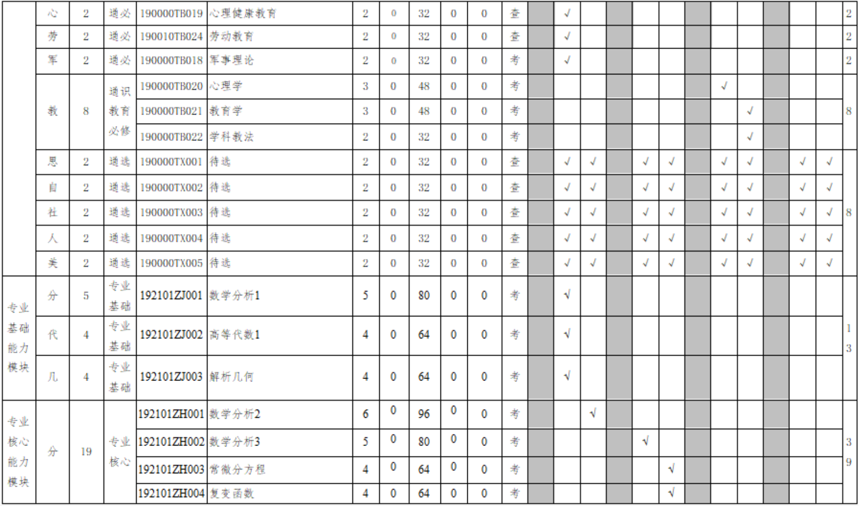 7.具有信息技术应用能力,熟练掌握计算机基本操作、程序设计和办公自动化的基本技能,熟练掌握文献查阅和检索技能,及用数学软件制作和开发数学课件的技能。计算机水平,要达到学校规定的国家等级标准。