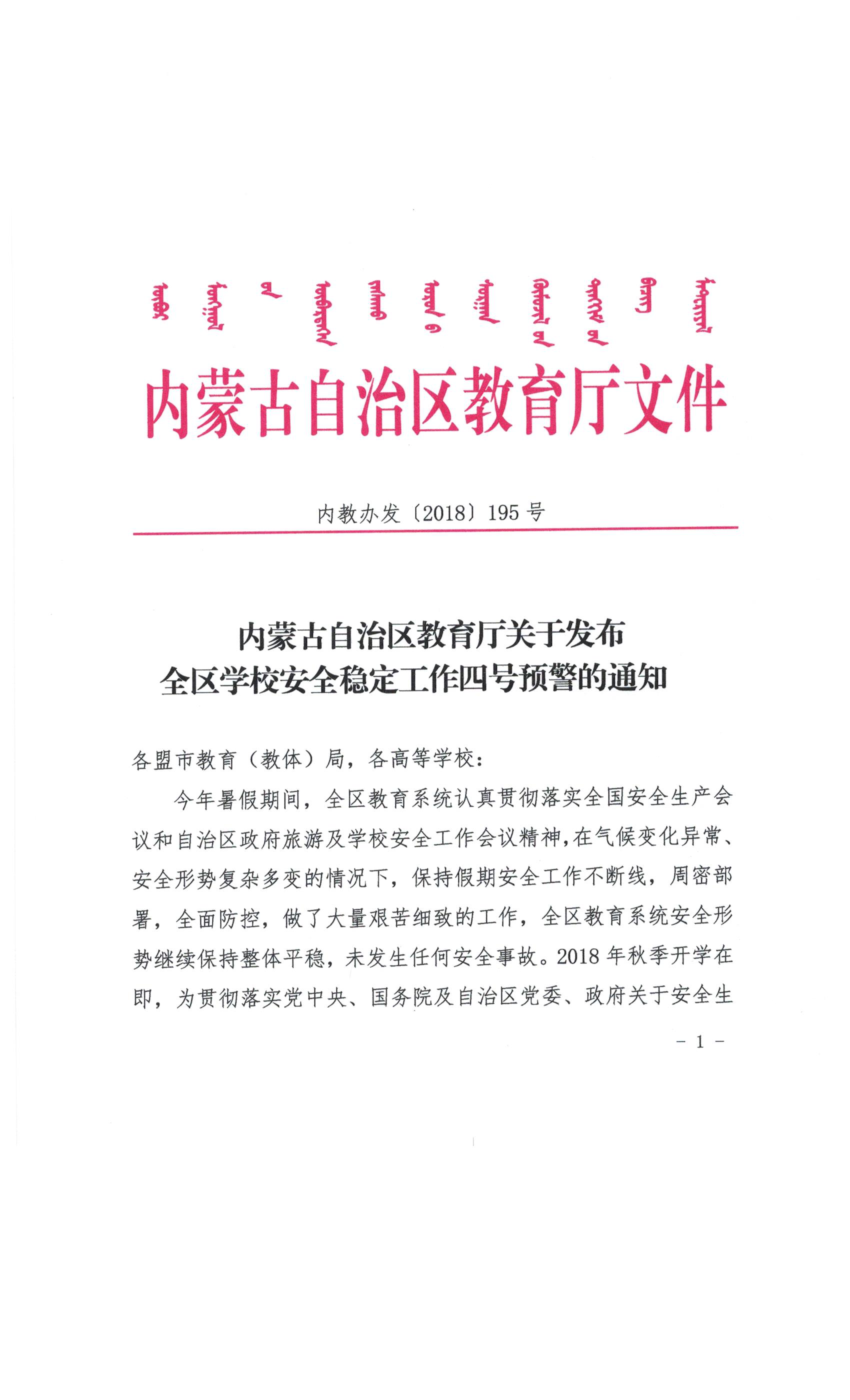 关于转发PP电子游戏网站《内蒙古自治区教育厅关于发布全区学校安全稳定工作四号预警》的通知