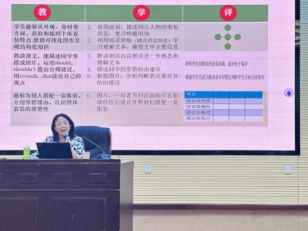 会上,宿老师将多年的评教经历转化为直观的电子图表,为同学们仔细讲解了《义务教育课程方案和课程标准》多年来的修订历程以及单元整体教学的基本思路。