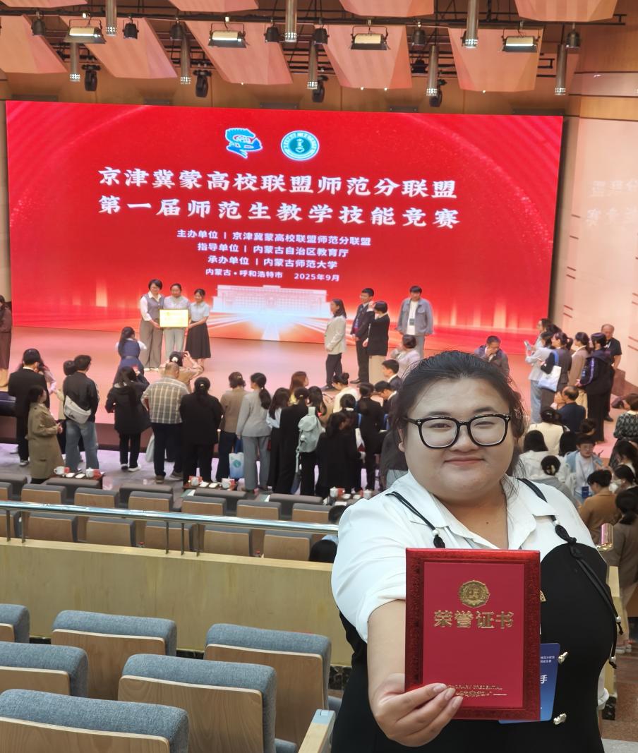 9月20日,由京津冀蒙高校联盟师范分联盟主办、内蒙古师范大学承办的第一届京津冀蒙师范生教学技能竞赛决赛在内蒙古师范大学顺利举行,我院2022级历史学二班庞月君(指导教师张敏)进入决赛并荣获三等奖。