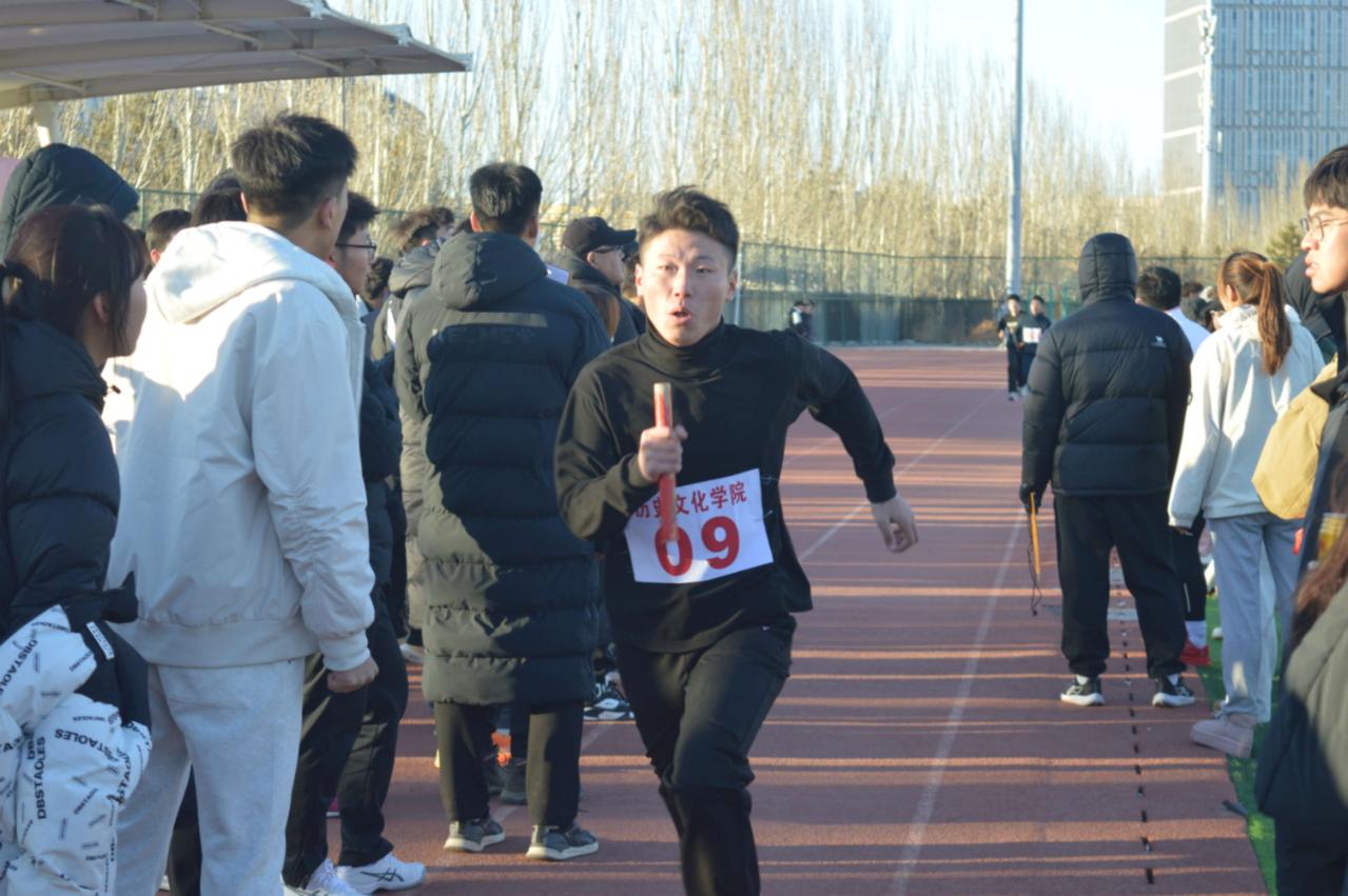 女子组比赛结束后,历史文化学院的男生们也踏上了属于他们的竞技之路。男生们的表现堪称亮眼,尽显热血与担当,为赛事添上浓墨重彩的一笔。发令枪响,打头阵的男生们仿若脱缰骏马,爆发力惊人,瞬间冲在前列;交接时刻,负责接棒的男生早早做好起跑姿势,身体前倾、掌心后伸,全神贯注紧盯来棒,一接到便如猎豹般疾驰而去;冲刺阶段,男生们更是咬紧牙关、青筋暴起,汗水顺着脸颊肆意滚落,浸湿衣衫。在历史文化学院男生们的共同拼搏之下,最终取得了第五名的佳绩。