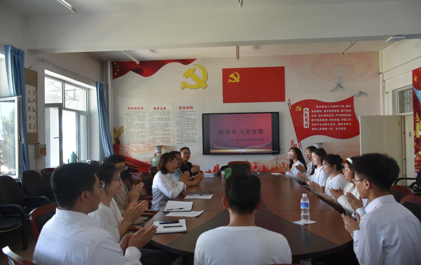 6月29日化学与生命科学学院党总支学生党支部在崇实楼408党员活动室举行新党员入党宣誓仪式,学院党总支书记、副书记,学团办主任,学生支部书记、组织委员和全体新发展党员和部分党员代表参加宣誓仪式。