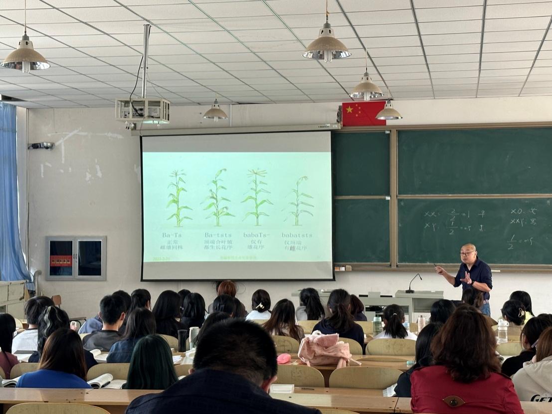 3月31日上午第4节,由我院优秀教师陈海伟主讲的《遗传学》示范课在崇实楼实验二正式开讲,化学与生命科学学院全体教师出席并观摩。陈老师讲授内容为性别决定和伴性遗传,思路清晰语言流畅,教学内容充实且安排合理,关注学生已有知识经验,教学效率高,风格幽默风趣。