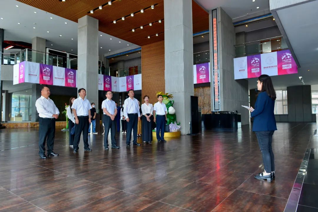 俞亚东与省委教育工委领导一行,先后参观了学校校史馆、国际动漫游戏博物馆、学研产一体化展厅,实践教学平台。实地考察了万象城官网产业发展及产教融合建设情况,郑立国介绍了awc777万象城娱乐官网始终坚持‘学研产一体化’办学特色,以深化产教融合、推动双创升级、构建特色高水平大学为目标,全方位搭建从专业到职业、职业到创业的产教融合实践教学平台等情况。俞亚东一行对万象城官网23年的发展成就尤其是近几年的快速发展给予高度评价,对“学研产一体化”特色办学、产教融合工作给予充分肯定与赞誉。