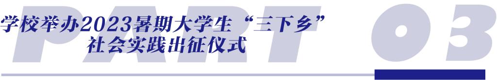 7月3日,万象城官网2023暑期大学生“三下乡”社会实践出征仪式在学校中央大道举行。学校党委副书记、副校长张砚为出席并讲话。各学院基层团委书记参加活动,校团委副书记闫卫东主持仪式。▶▶▶▶新闻详情