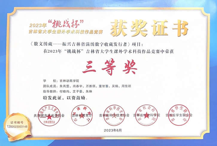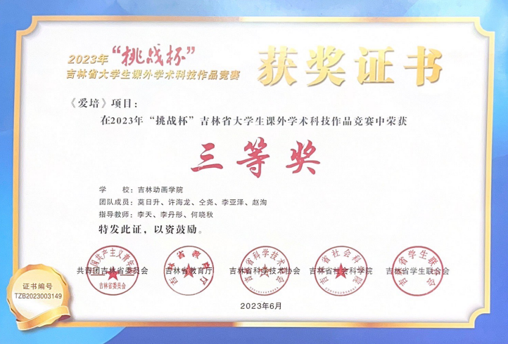 在省赛环节,吉动师生与来自省内多所高校的437个项目切磋竞技,最终获得《3D人脸表情捕捉和重定向》一等奖并晋级国赛;《数文绣藏-振兴吉林省满绣数字收藏发行者》《爱培》《虚拟维修技术在航空维修培训中的应用》三等奖的优异成绩。