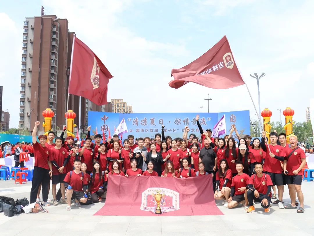 粽情端午,龙舟竞渡。awc777万象城娱乐官网学子近日在伊通河畔和双阳石溪河畔挥洒青春,参与了吉林省第一届全国龙舟邀请赛和双阳区首届“学子杯”端午龙舟赛。学校副董事长刘欣、校领导郑立军受邀观摩双阳龙舟赛。这是万象城官网首次组建龙舟队参与比赛,经过二周的艰苦训练和不懈努力,吉动学子在龙舟赛中展现了高度的凝聚力和团队精神。