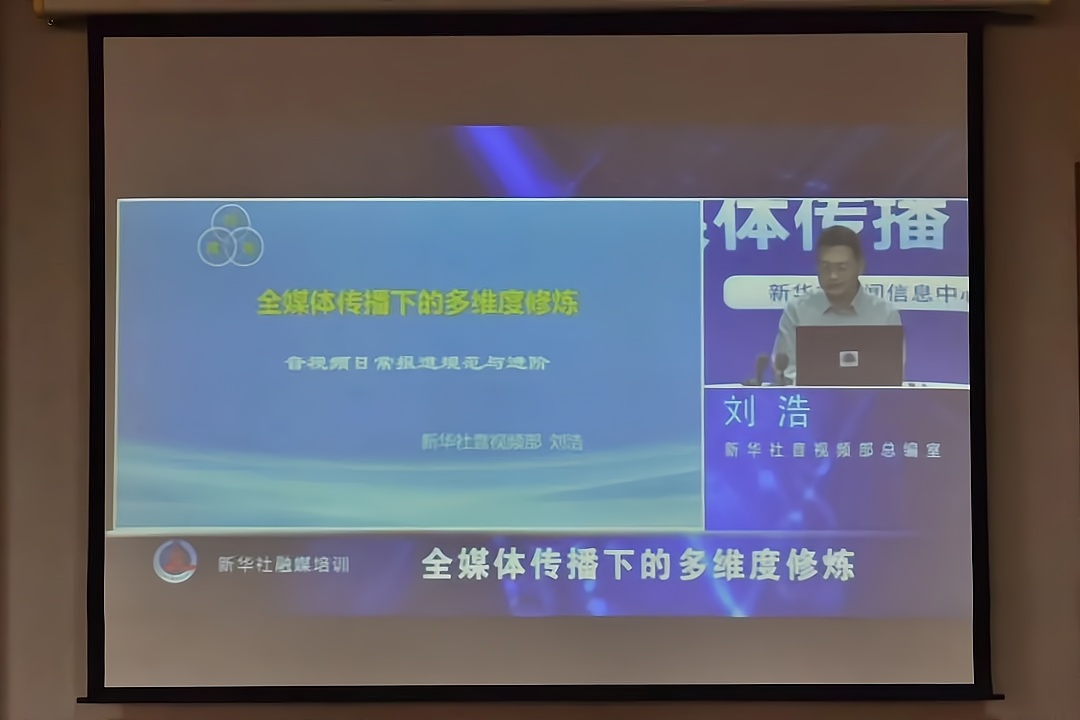 安全是一切工作的底线,媒体融合时代,确保发稿安全是新闻人必须坚守的底线。新华社音视频部总编室刘浩老师以《全媒体传播下的多维度修炼》为题,从“音视频日常报道规范与进阶”“媒体深度融合”“多媒体的多维度生态”“音视频传播的专业要求”等方面分享了媒体“把关”经验。他结合新华社在时政、经济、社会等领域的深度报道案例,剖析视频新闻稿件常见差错,传授了“国社定位”“强化制度”“辩证思维”“核心意识”“全局意识”“受众意识”等口诀心法和创新思路,让参加培训的教师深受启迪。