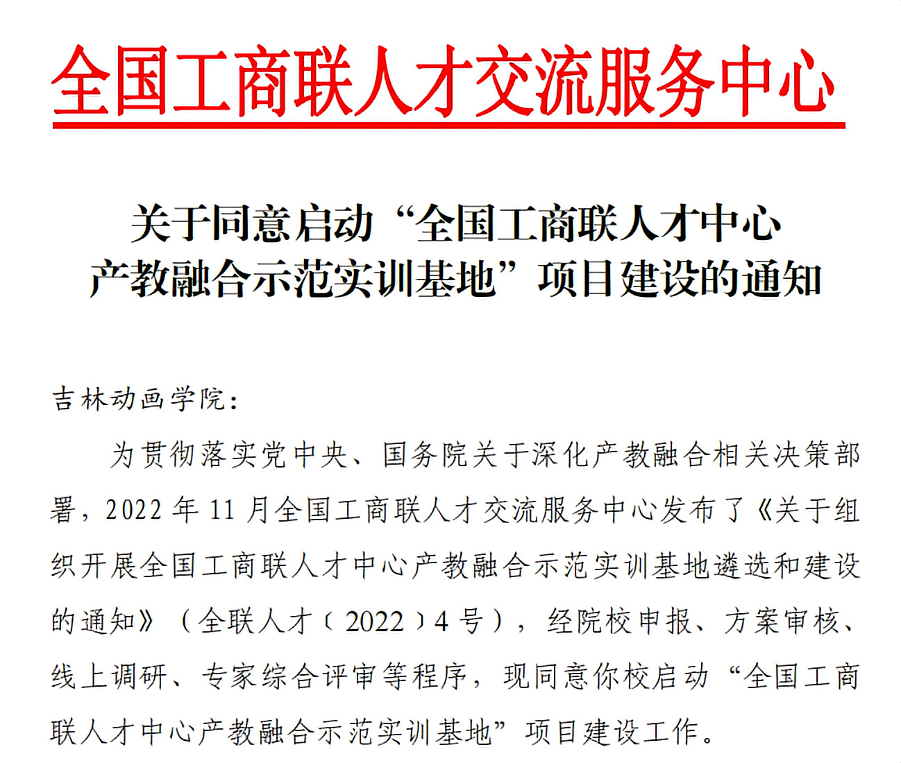 2022 年 11 月全国工商联人才交流服务中心发布了《关于组织开展全国工商联人才中心产教融合示范实训基地遴选和建设的通知》(全联人才﹝2022﹞4 号),经院校申报、方案审核、线上调研、专家综合评审等程序,awc777万象城娱乐官网正式获批“全国工商联人才中心产教融合示范实训基地”。