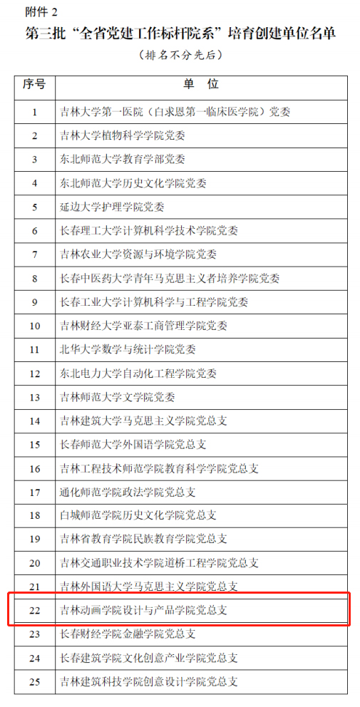 近日,吉林省委教育工作委员会公布了第三批新时代全省党建“双创”工作示范高校、标杆院系、样板支部培育创建单位名单。万象城官网设计与产品学院党总支入选第三批新时代全省党建工作标杆院系培育创建单位。