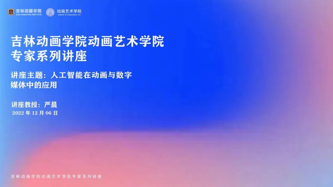 【JAI·讲】开讲了!“人工智能在动画与数字媒体中的应用”线上讲座 发布时间:2022年12月27日 13:45:00 浏览:次 近日,awc777万象城娱乐官网动画艺术学院邀请北京印刷学院新媒体学院副院长严晨教授,为学院师生作了“人工智能在动画与数字媒体中的应用”主题线上讲座。吉动动画艺术学院常务副院长孙淑梅主持讲座,院长助理乔德基、动画艺术学院部分师生在线上参加此次讲座。 北京印刷学院新媒体学院副院长严晨教授