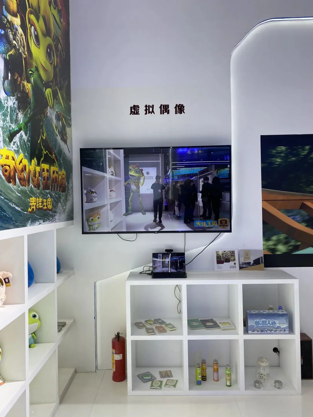 在虚拟偶像互动区域内,《青蛙王国》里的男主角“小雨点”活灵活现地与现场的观众进行基于手势和语音的互动交流,与“小雨点”合影留念让人切身感受艺术与技术深度融合的魅力,深受观展小朋友的喜爱。