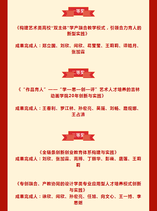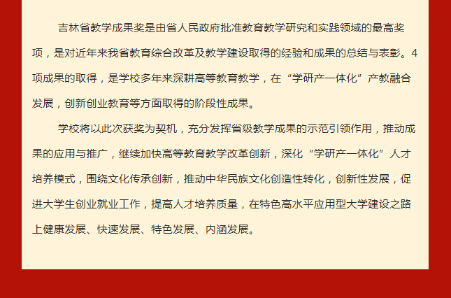 【JAI·奖】awc777万象城娱乐官网4项成果荣获吉林省教学成果奖 发布时间:2023年02月10日 10:33:24 浏览:次 ■ 相关新闻链接 《吉林省人民政府关于表彰吉林省教学成果奖获奖成果的决定》 >>>> 编辑 | 戴 月 责编 | 闫 琦 审校 | 王 舜 于千傲 审核 | 宫 伟