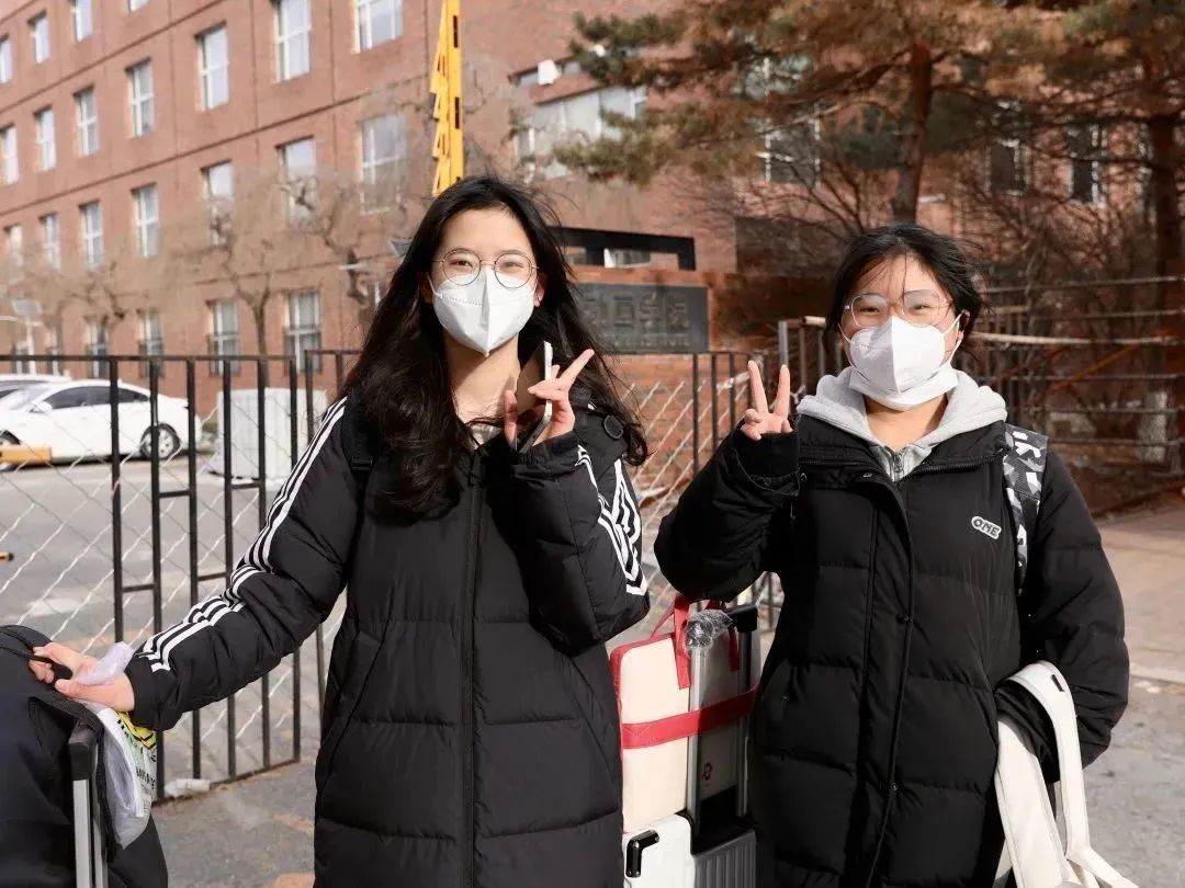 工作组每天4点天不亮就起床,顶着零下十几度的严寒天气,做车辆调度、发放防疫包、早餐包、开具离校返乡《无疫情证明》、协助快递邮寄等准备工作;校门内外值班老师无接触情况下逐一核对名单、核酸和航班车次,确保5:30,第一班发往“三站一场”班车准时发出。