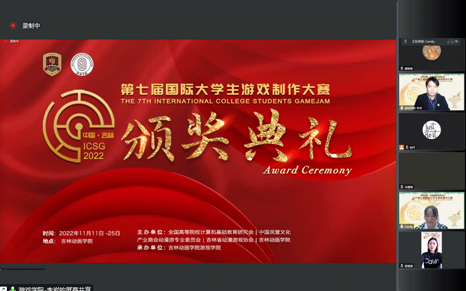 11月25日14时,2022中国·吉林国际游戏论坛暨第七届国际大学生游戏制作大赛落下帷幕,在线上举办了颁奖典礼式,所有参赛选手、指导教师、专家评委共同参加了闭幕式暨颁奖典礼。在颁奖典礼上公布了获奖名单,同时获奖团队进行作品路演,展示了通过大赛所创作出来的优秀游戏作品。