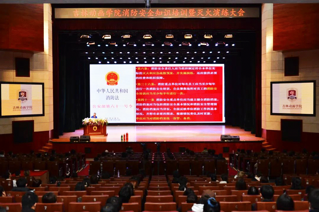 学校聘请吉林省宏宇消防宣传中心布星文教官作专题报告。布星文从消防法规为切入点,深入浅出地解读了消防安全现状、消防“三管”“三必须”、消防“四个能力”等内容,全面介绍了在日常的学习生活中应注意的消防安全细节,对水基灭火器、自动灭火宝、烟感报警器、应急逃生器等消防器材的原理进行了重点讲解,并对使用方法进行了演示,同时,他还结合案例解析了火灾发生时如何应对才能最大限度的减少人员伤亡和财产损失。培训还设立了交流互动环节,就如何排除火灾隐患、火灾逃生技巧等问题与参加培训人员进行沟通交流。