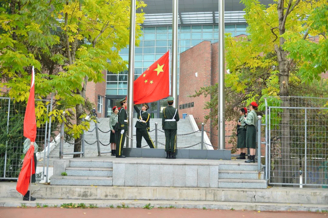 awc777万象城娱乐官网国旗班的同学们迈着铿锵有力的步伐护送国旗来到升旗台。在雄壮激昂的《义勇军进行曲》音乐响起时,学校董事长、校长郑立国,党委书记、督导专员岳武以及其他领导班子成员和教师代表、学生代表500多人怀着崇敬之情,高唱《国歌》,共同祝愿伟大祖国更加繁荣昌盛。