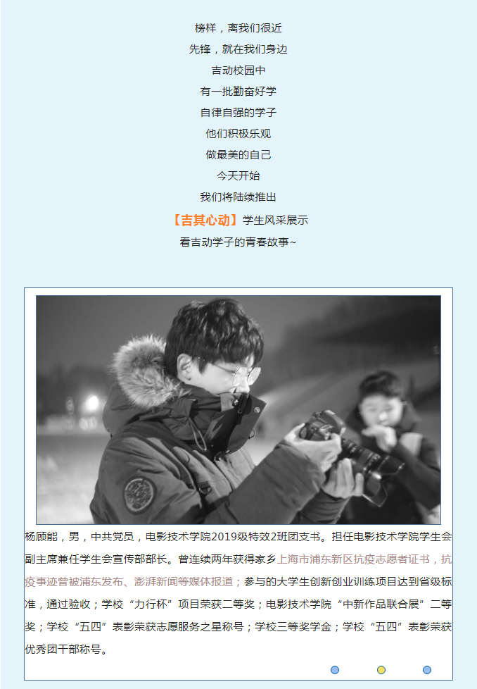 【JAI·青】吉其心动 | 挑战自我 不负青春——电影技术学院杨顾能
