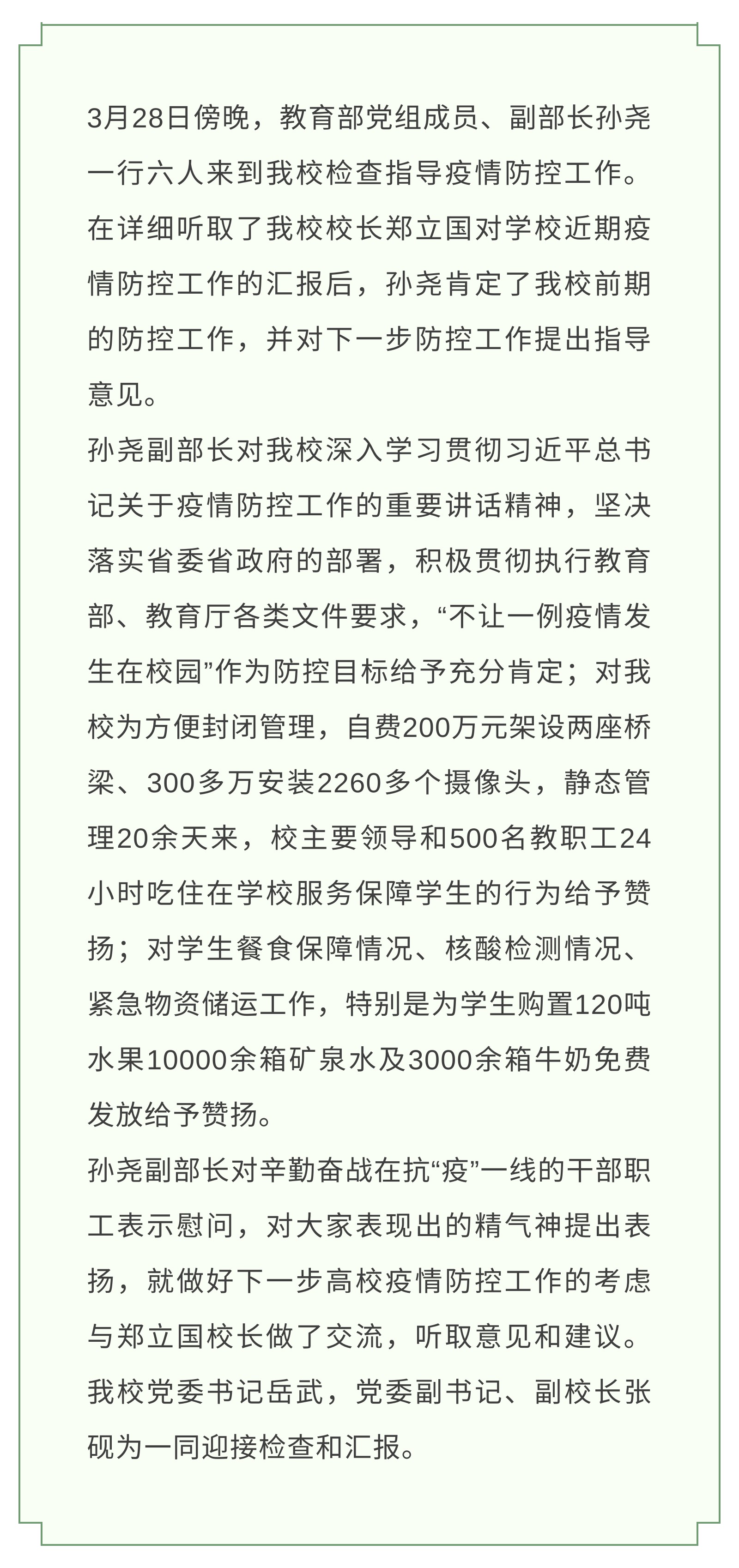 【JAI·防“疫”】教育部副部长孙尧到万象城官网巡视指导疫情防控工作