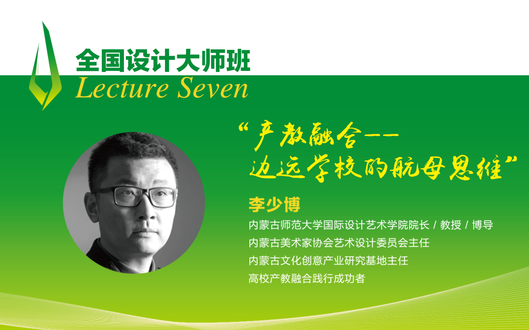 【JAI·讲】大师说 | 产教融合——边远学校的航母思维(摘要) 发布时间:2021年10月18日 17:45:00 浏览:次 首先介绍我们师范大学的设计学科。1954年建立了艺术科,1994年,师范大学从原有的美术学院下抽调了9位教师成立了国际设计艺术学院,2000年获得设计艺术学二级硕士学位授予权,2007年评为自治区品牌专业,2009年获得艺术硕士MFA的专业授权点,2011年拿到了一级学科硕士授予权。 ▲内蒙古师范大学国际设计艺术学院院长、教授 李少博