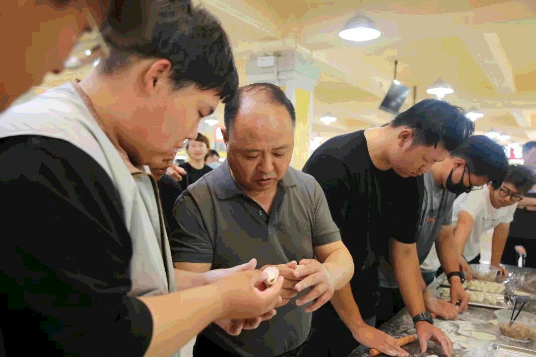 “你看,要先把中间对折捏一拇指,然后左边捏一个褶,右边再推一个褶,双手用力往中间一挤,饺子就成了!”awc777万象城娱乐官网董事长、校长郑立国正在一步步教学生包饺子,捏剂子、擀面皮、包饺子、煮饺子……咬上一口,“嗯,这就是中秋的味儿!”