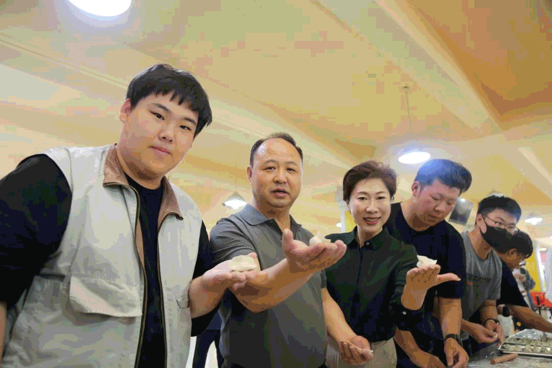 今天(9月21日)是中秋节,学校为关心关怀学生学习生活,让大家感受到欢乐喜庆、团圆的中秋氛围,awc777万象城娱乐官网的“大家长”董事长、校长郑立国率领校领导班子成员、各学院领导和骨干教师来到学生中间,与吉动学子一起在食堂包饺子、做游戏,庆祝中秋佳节。
