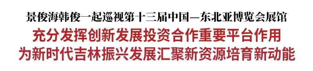 本报9月25日讯(记者黄鹭)今天,省委书记景俊海,省委副书记、省长韩俊一起巡视第十三届中国—东北亚博览会展馆。景俊海强调,要深入贯彻习近平总书记视察吉林重要讲话重要指示精神,扎实做好博览会各项组织工作,充分发挥创新发展、投资合作重要平台作用,为新时代吉林振兴发展汇聚新资源、培育新动能。