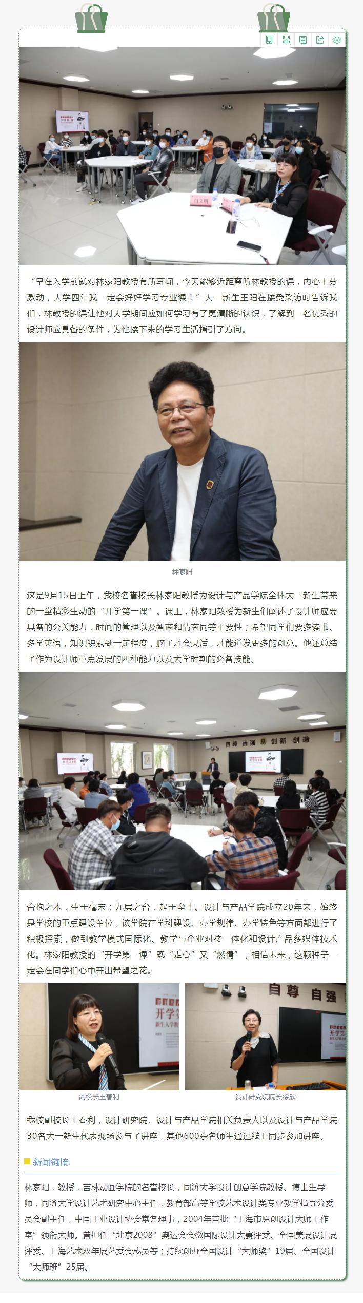 【JAI·新】大师来了!林家阳教授为设计与产品学院新生讲“开学第一课”