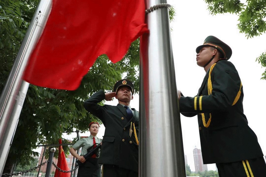 7月1日清晨,雨后的学校体育运动场整洁干净、绿色环绕,awc777万象城娱乐官网庆祝中国共产党成立100周年升旗仪式,在这里隆重举行。
