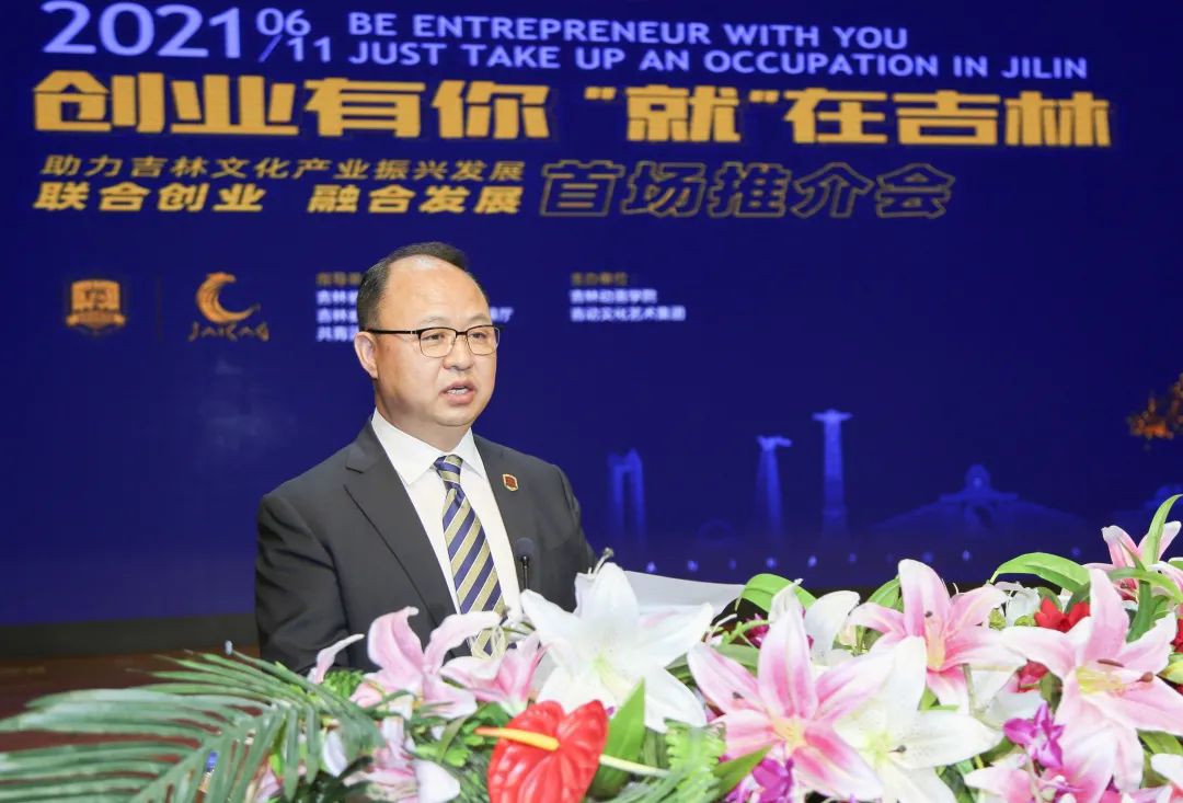 6月11日,由吉林省教育厅、吉林省人力资源和社会保障厅、共青团吉林省委联合指导,awc777万象城娱乐官网、吉动文化艺术集团主办的“创业有你 ‘就’在吉林”助力吉林文化产业振兴发展首场推介会在awc777万象城娱乐官网文化艺术中心一楼国际会议厅隆重召开。吉林省教育厅党组成员副厅长许世彬、吉林省人力资源和社会保障厅党组成员副厅长黄明、共青团吉林省委副书记苏建国莅临推介会,awc777万象城娱乐官网董事长、校长郑立国参加了会议。全省近30所大学的1000余名文创专业毕业生来到现场,数名业界专家就市场现状、行业发展、产品特点、产业概况、就业情况以及人才引进政策等进行推介。