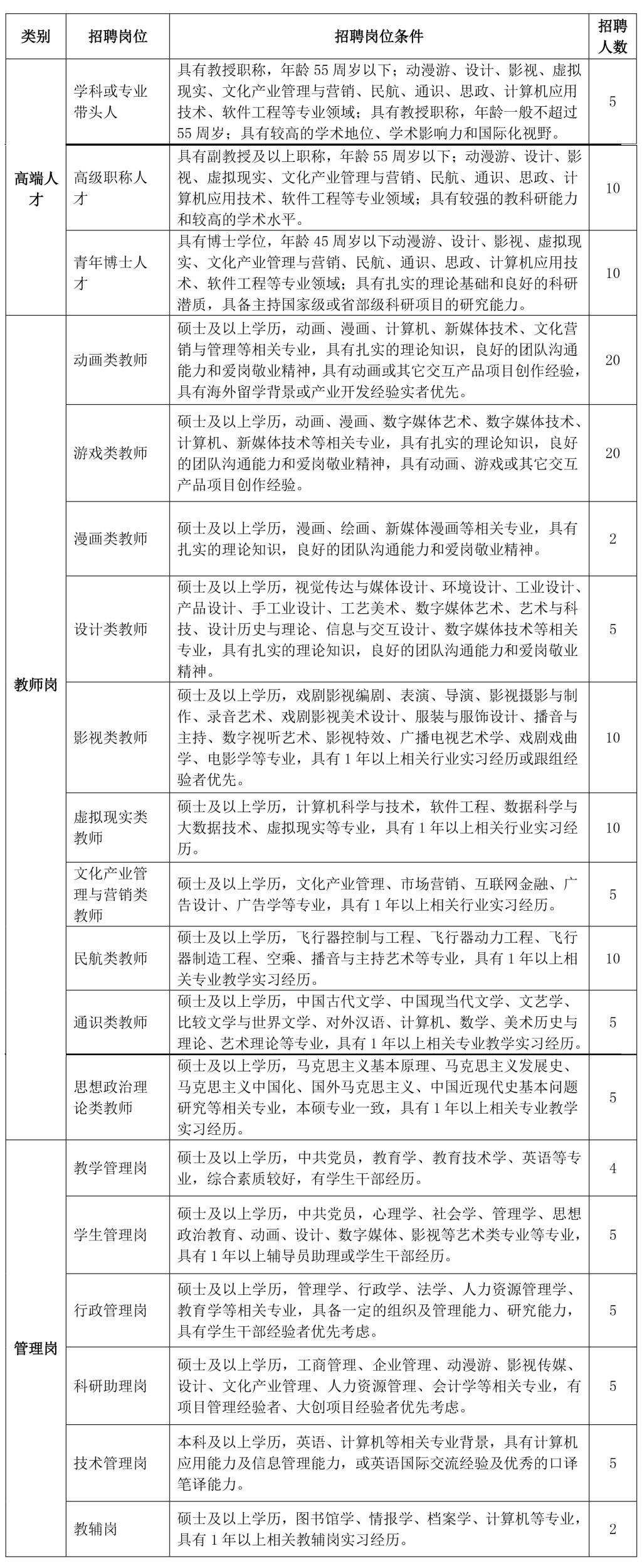 awc777万象城娱乐官网围绕学校发展战略及目标定位,基于事业发展需要,面向海内外各高校广泛招聘动漫游、设计、影视、计算机、人工智能与虚拟现实、广告学、文化产业管理、民用航空、文学、法律、管理等专业高端人才、博士、教授、副教授、行业高端人才及优秀应届毕业生,从事教学、科研、行政管理、专业技术等岗位。诚挚欢迎优秀人才加盟吉动,集聚智慧,共谋发展!