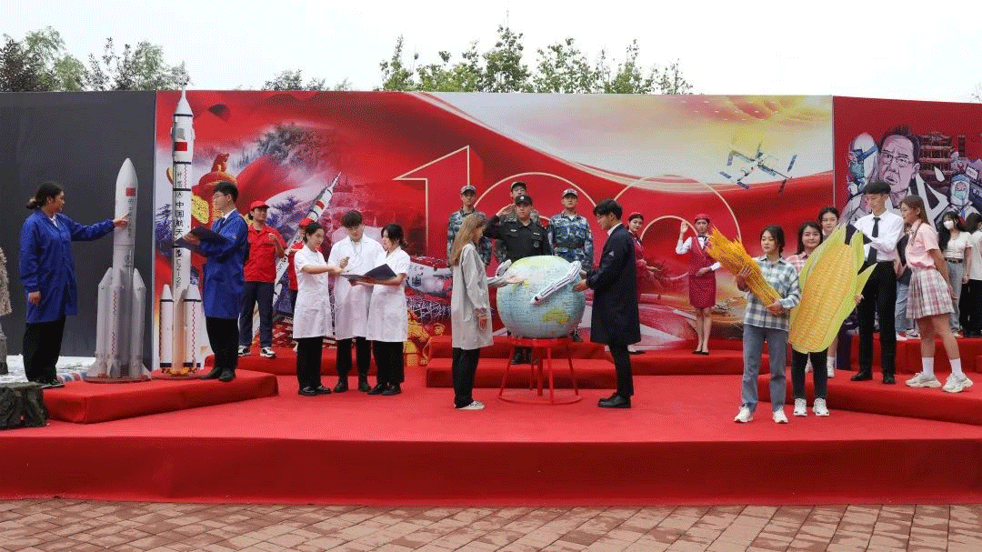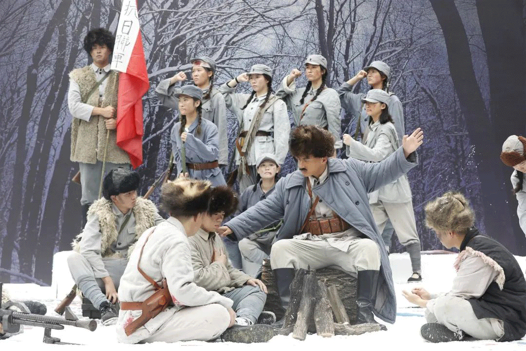 长征主题单元,通过5-6个形体造型表现红军们经过艰苦努力,终于走出泥泞的沼泽草地,吹起了冲锋的号角,迎接胜利的曙光。赞美红军乐观向上、同心协力、为了自己的理想,为了共产主义事业不怕苦、不怕累、不怕流血牺牲的革命精神;东北抗联主题单元,还原了东北抗联密营地的艰苦生活,真实的反映了抗联英雄们为了反抗侵略者的压迫、不惧牺牲、奋战到底的大无畏精神。被服厂女兵辛勤保障抗联战士后勤、卫生员紧急救治受伤的抗联战士、冷云班长带领的八名女抗联战士英勇投江,栩栩如生的雕塑,震撼人的心灵;改革开放主题单元,展现改革开放40多年取得的伟大成就!世界第一大的天眼、蛟龙号、港珠澳大桥、航空母舰山东号、中国醒狮、长征火箭、高铁车头等道具元素来体现中国腾飞的景象。抗疫主题单元,讲述的是2020年的庚子春节,新型冠状病毒疫情形势越发严峻,在这场看不见“敌人”、没有硝烟的战役中,却有这样一群人,有学生、警察、消防官兵、厨师、护士等,逆流而上,众志成城,扛起了“爱的桥梁”。突出体现在疫情期间,全国人民万众一心科学防控抗击疫情的坚定信念和决心。