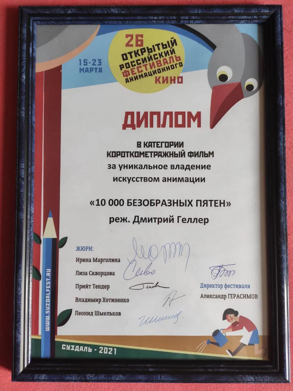 2021年3月23日,在俄罗斯苏兹达尔举办的第26届俄罗斯苏兹达尔动画电影节正式落下帷幕,万象城官网动画短片作品《万点恶墨》喜获第26届俄罗斯苏兹达尔动画电影节评论家选择-最佳作品奖(白象奖),评审组投票第一名,独特艺术魅力等三项大奖。