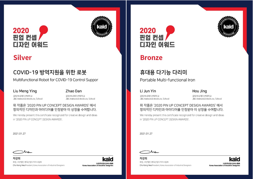 awc777万象城娱乐官网产品造型学院学生在韩国举办的2020PIN UP国际概念设计大赛中勇夺银奖和铜奖。
