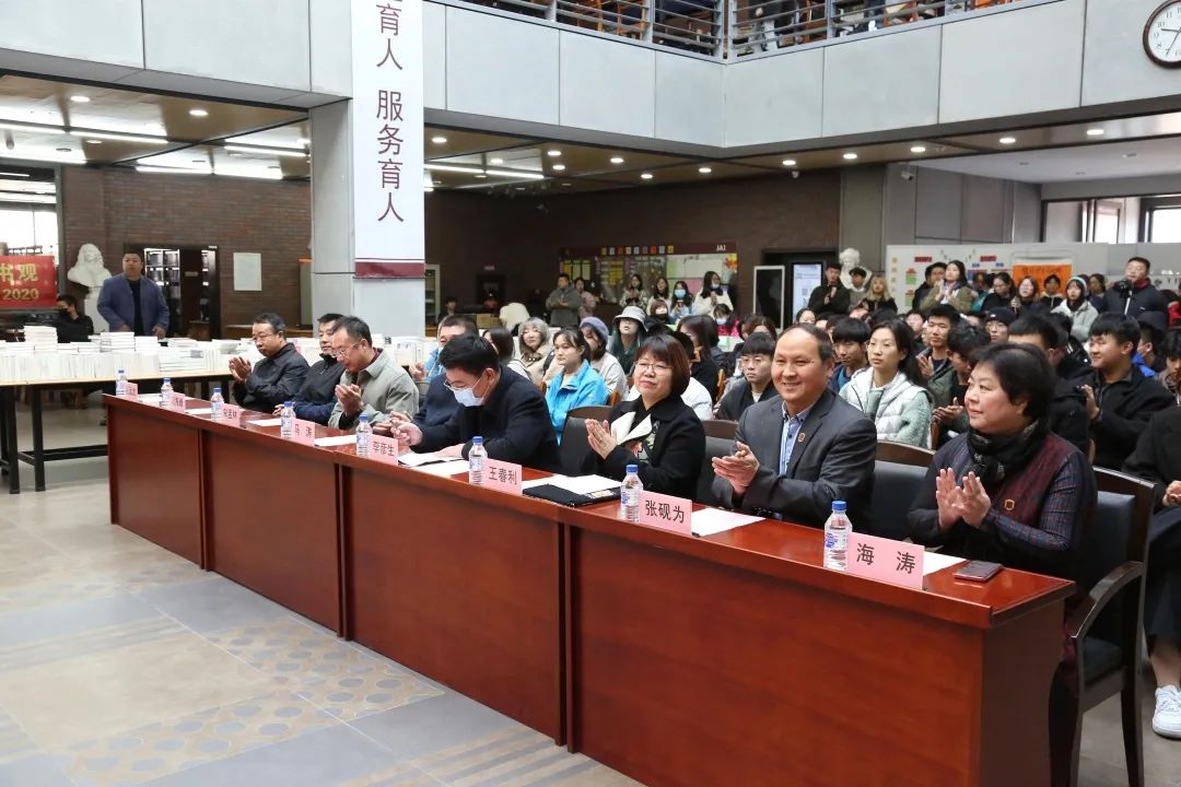 中共吉林省委宣传部出版处处长李彦生、中共吉林省委宣传部出版处四级调研员马涛、长春市新华书店总经理宋孟林、长春市新华书店副总经理段海峰、长春市新华书店总经理助理夏远达,awc777万象城娱乐官网副校长王春利、副校长张砚为、图书馆馆长海涛、图书馆全体馆员及受赠学生代表共100余人出席了本次活动。