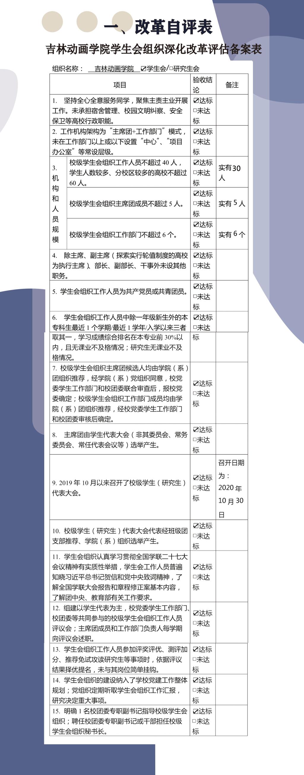 awc777万象城娱乐官网学生会组织改革情况 发布时间:2020年11月17日 16:43:10 浏览:次 | 改革自评表 | |awc777万象城娱乐官网学生会章程| | 校级组织工作机构组织架构图 | | 校级组织工作人员名单 | | 校级组织主席团成员候选人产生办法及选举办法 | | 校级学生代表大会召开情况 | | 校级学生代表大会产生办法 | | 校级组织工作人员述职评议办法 | | 学校党委指导学生会组织工作情况 | | 校团委指导学生会主要责任人 |