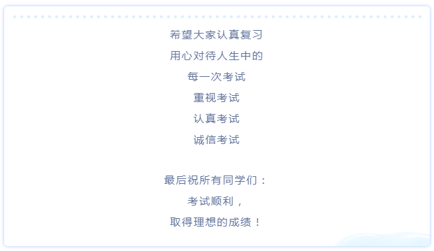 2020年全国硕士研究生招生考试将于2019年12月21日、22日进行,同时校内期末考试也陆续开展。为进一步教育学生遵纪守法、诚信考试,严格考试纪律,保证考试的严肃性和公正性。要求下: