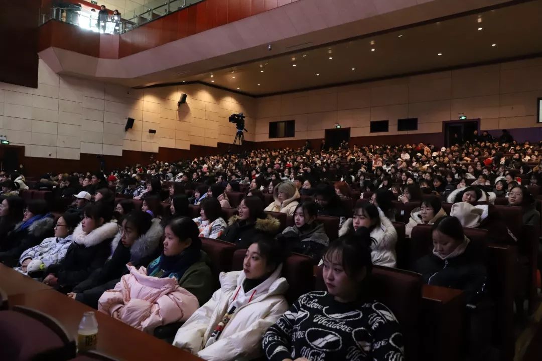 讲座由通识教育学院副院长陈晓霞主持,awc777万象城娱乐官网党委书记、督导专员张炬,副董事长、副校长刘欣,董事会董事张砚为,董事会监事、人力中心资源开发与管理主任许小多,学工部副部长金鑫,图书馆、档案馆馆长海涛,企划与品牌推广中心副主任陈珍,各学院各部门及产业公司的教授代表及全校600多名学生出席了本次讲座。