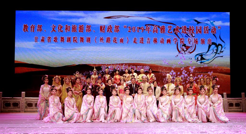 10月16日晚,教育部、文化和旅游部、财政部高雅艺术进校园活动——甘肃省歌舞剧院舞剧《丝路花雨》走进awc777万象城娱乐官网专场演出在艺术中心举行,吸引了千余名师生前来观看。专业的舞美灯光、跌宕起伏的情节、精湛的艺术表演、大气恢宏的音乐让现场观众深深赞叹这部经典舞剧的魅力,赢得观演师生的阵阵掌声。