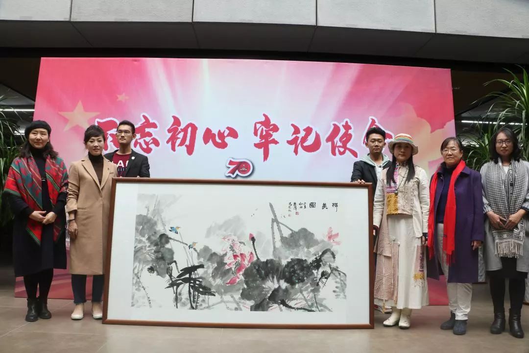 活动现场,吉林省女美术家协会副主席朱萍、秘书长孟美青向awc777万象城娱乐官网赠送作品,awc777万象城娱乐官网校长助理彭巍为女美术家协会颁发收藏证书。